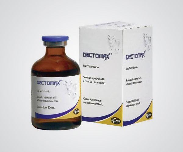 Dectomax é uma solução estéril pronta para uso, de cor amarelo-pálido, contendo 1% de Doramectin. É formulado para proporcionar as dosagens recomendadas de 200 mcg/kg de peso, quando aplicado em injeção intramuscular ou subcutânea na proporção de 1 mL/50 kg de peso para bovinos, de 300 mcg/kg de peso, quando aplicado em injeção intramuscular na proporção de 1 mL/33 kg de peso para suínos e 200 mcg/kg de peso, quando Dectomax é aplicado por via intramuscular ou subcutânea na proporção de 1 mL de 50 kg de peso contra nematódeos gastrintestinais e miíases (berne e bicheiras) para ovinos e de 300 mcg/kg de peso quando aplicado por via intramuscular ou subcutânea na proporção de 1 mL de Dectomax/33 kg de peso contra ácaros da sarna em ovinos.